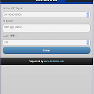 Aplikasi pengiriman SMS ke semua Operator Nasional Indonesia.. pengiriman sms tidak di kenakan biaya atau Free.. dan tidak mengurangi pulsa baik paket sms atau paket internet silahkan mencoba dan gunakan aplikasi ini sepuasnya..